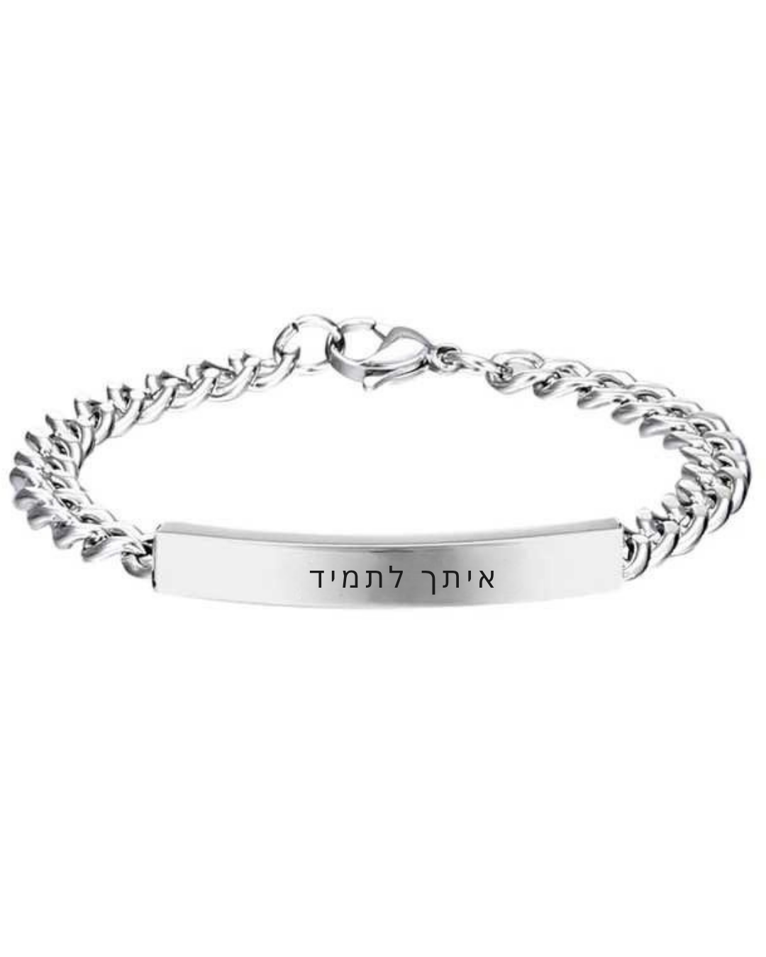 על הלוחית המרכזית, תוכל לחרוט שם, תאריך, ראשי תיבות או משפט קצר – כל דבר שמשמעותי עבורך או עבור מי שיקבל את הצמיד.